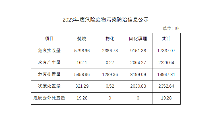 2023年危險廢物污染防治信息公示